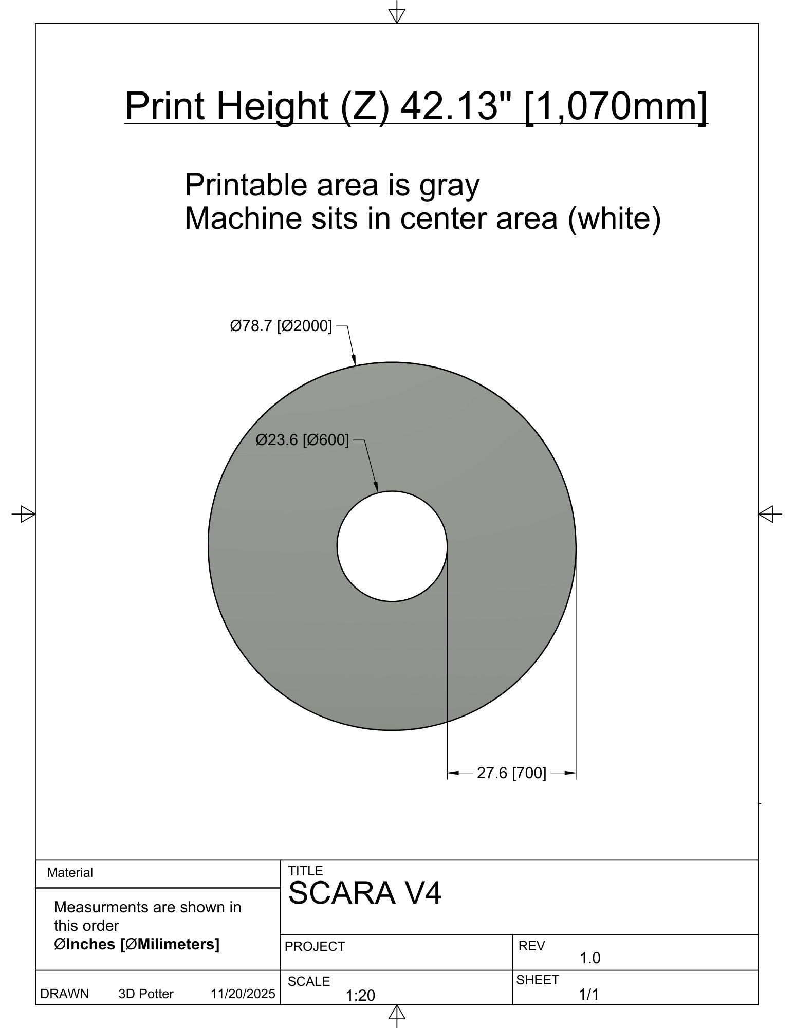 The Scara V4 is our next-generation clay and cement 3D printer. The V4 prints with clay, paste-like, and cementitious materials. It has a much larger build volume than the Cartesian models, the added build space allows the machine to be dual-purpose and print in both clay and cementitious materials.